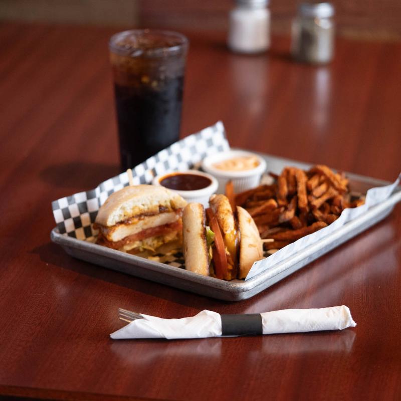 Choice of French Fries, Cole Slaw, Potato Salad, Chips or Chili | Substitute a Side: Garlic Fries, Sweet Potato Fries, Onion Rings, Green Salad +$2.00